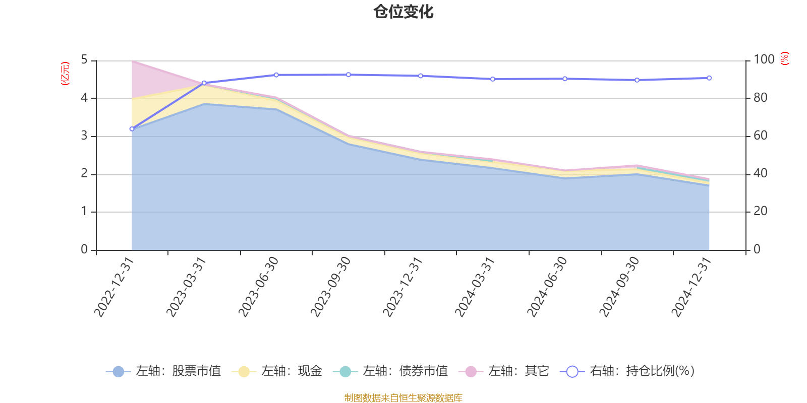 据定期报告数据统计,成立以来平均股票仓位为87.76%,同类平均为86.41%。2023年三季度末基金达到92.53%的最高仓位,2022年末最低,为63.93%。