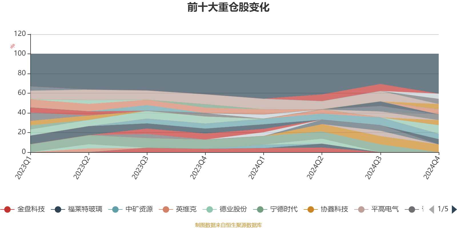 该基金持股集中度较高。截至2024年四季度末,基金十大重仓股分别是通威股份、协鑫科技、隆基绿能、阿特斯、富临精工、信义光能、晶澳科技、大全能源、晶科能源、天合光能。